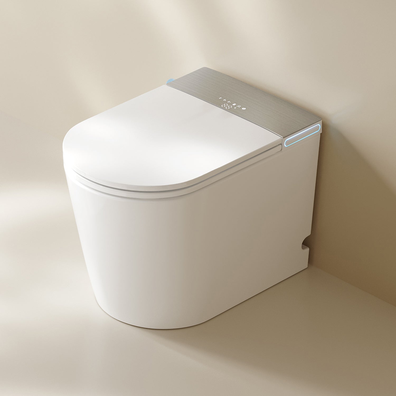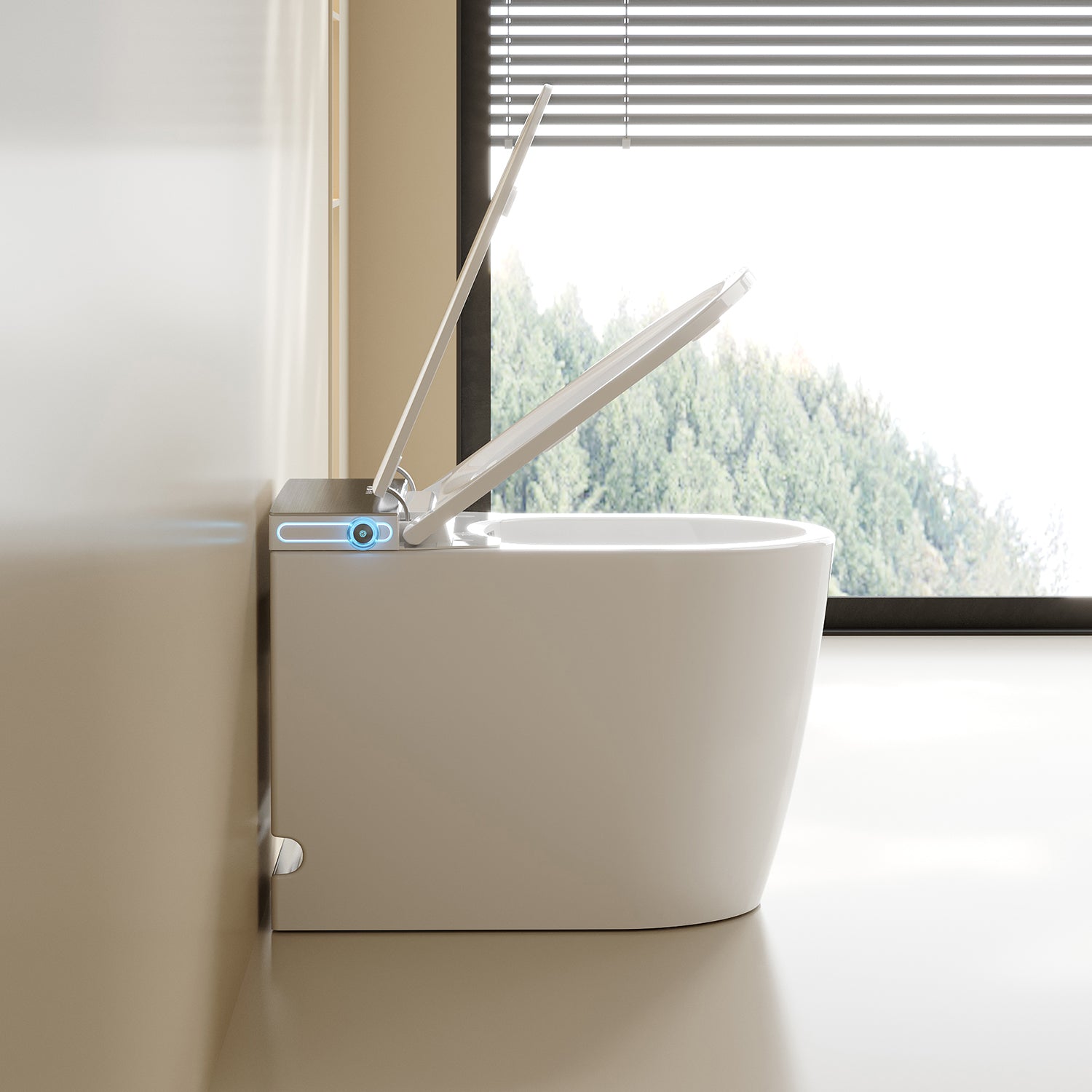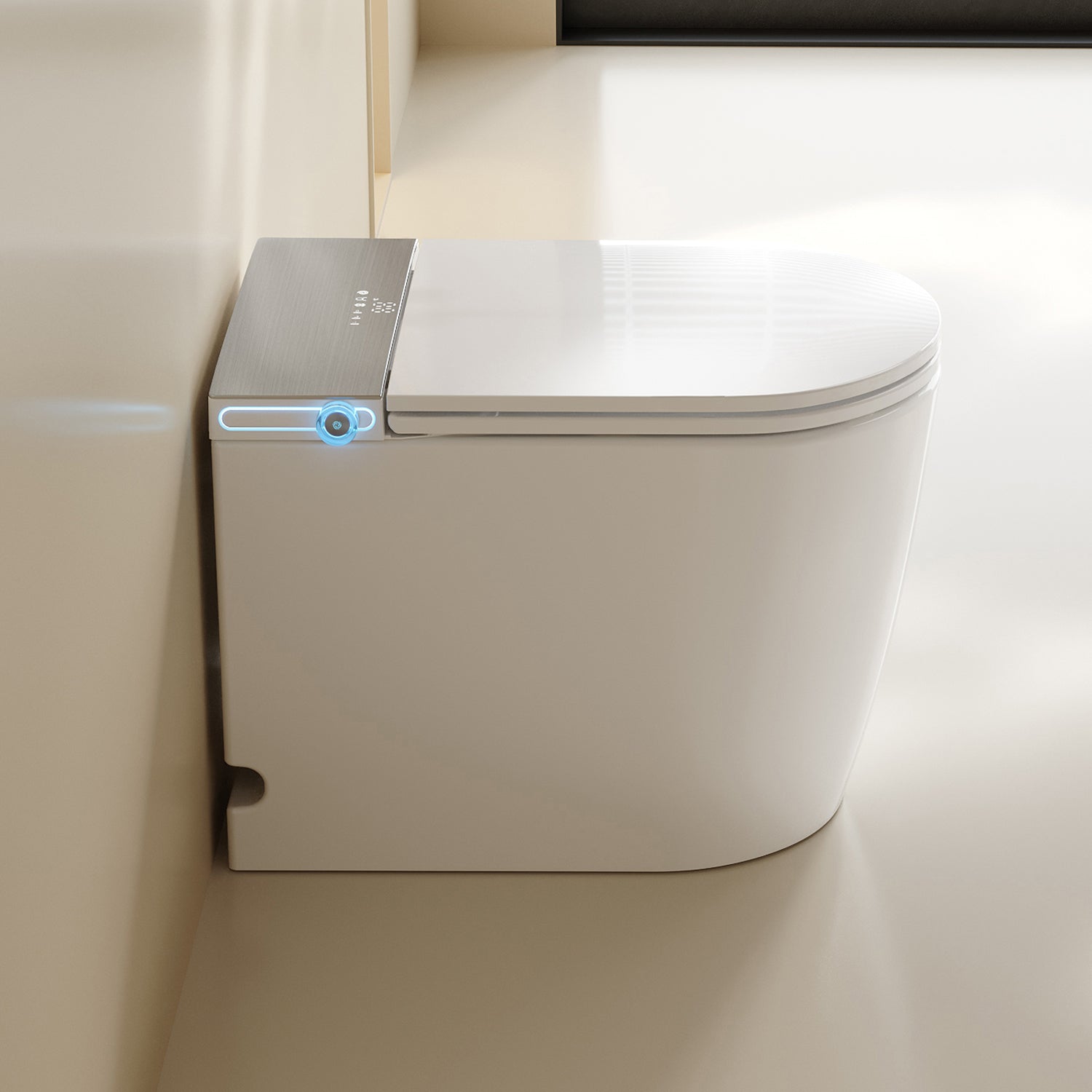 This one-piece smart toilet combines a minimalist design with smart engineering, including a transparent tank housing that reflects its cutting-edge flushing technology—ideal for luxury bathroom upgrades.